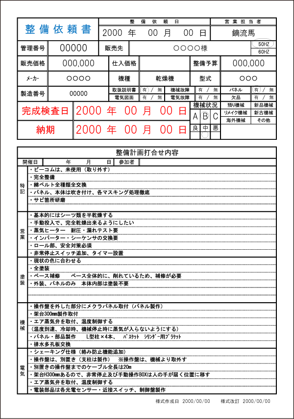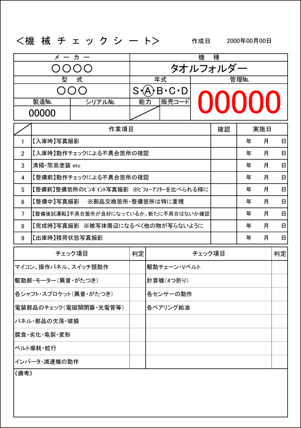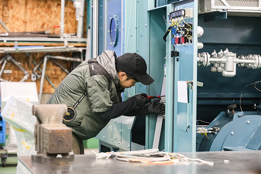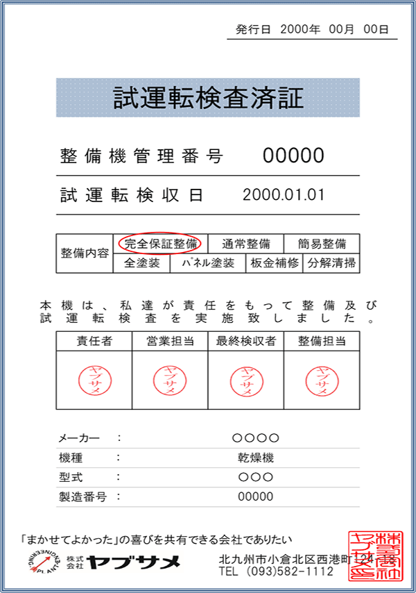 運転チェックを繰り返し行い初期トラブルを未然に防止する為、整備者が責任をもって検査
