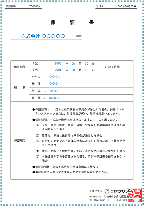 完成後は新品と同等の性能と品質を備え、1年間の保証を付与。10年間安心してご使用いただける、それがヤブサメの「リメイク機」です。